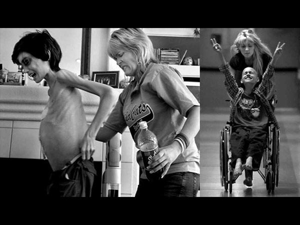 Derek became too weak and could hardly speak. In this photo, we can see his caregiver preparing to give him a sedative which would allow him to sleep peacefully forever. We salute the bravery of Cindy who being a mother was witnessing her son's death.