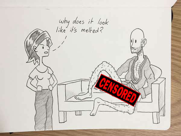 That unknown moment of flashing, as you do not realize your pants have holes in them!