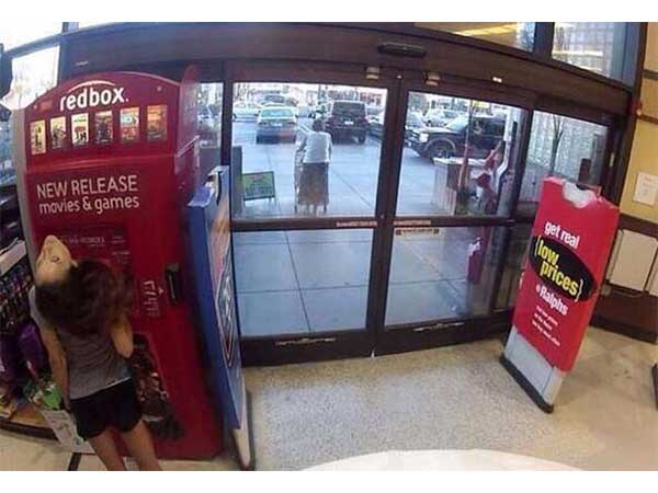 Damn! What was the girl doing at the Redbox? We don't think humans can twist their necks this way!