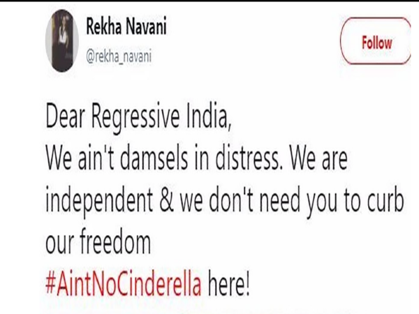 When a political party leader 'Sharmishta Mukherjee' tweeted a selfie of hers out post midnight. She wrote, "If I'm out at 12am, it DOES NOT mean I'm to be raped, molested, chased. My dignity is my right 24X7 #AintNoCinderella"