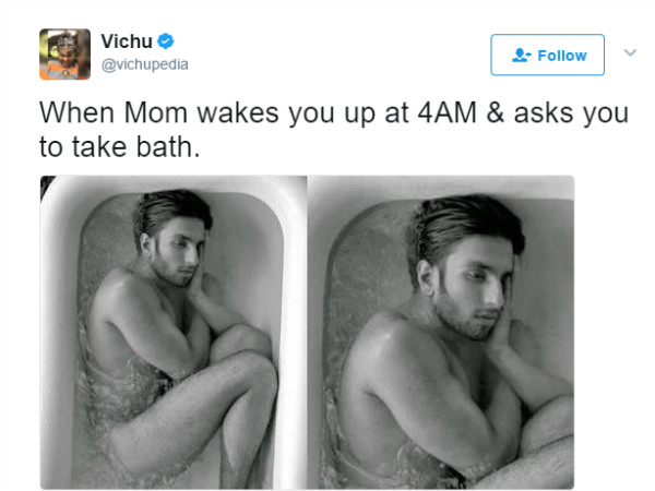 He is known for his quirky nature and for his bindass attitude. A picture from his movie 'Befikre' is going viral for all the right reasons on Twitter, as tweeterians are seen trolling him over the nude picture of his in the bathtub.