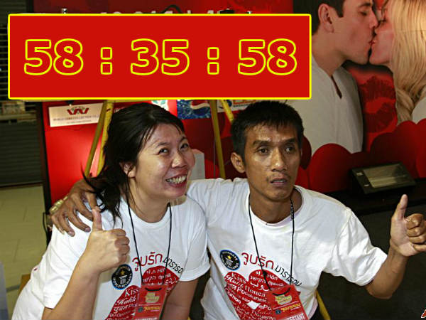 The hospital security guard named Ekkachai Tiranarat, 44 years, and his 33-year-old housewife, Laksana, had apparently locked their lips for 58 hours, 35 minutes and 58 seconds!