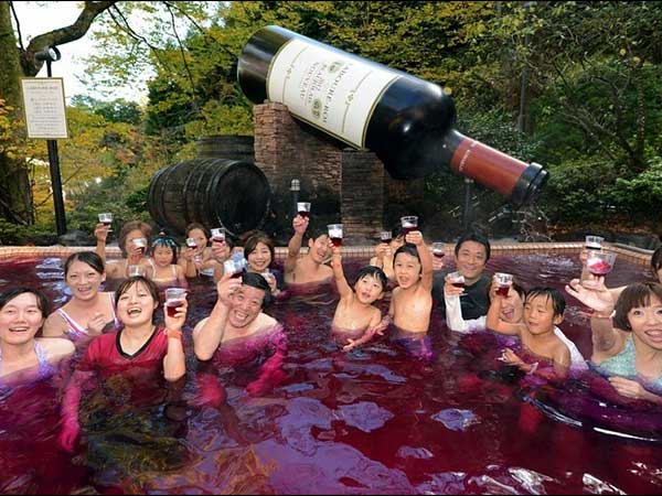 As the red wine contains resveratrol, which is an antioxidant that protects the skin from environmental damage, it is really beneficial to bathe in this. So each day fresh red wine is poured into the pool. While the visitors can soak in wine, they can even enjoy a drink or two.