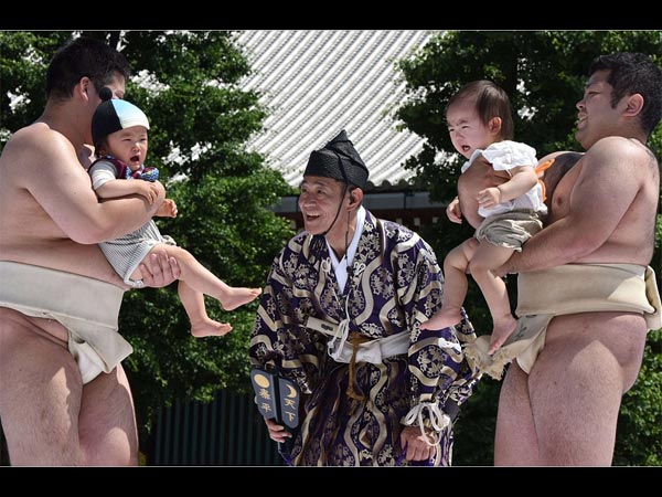 These heavyweight tear-jerker Sumo wrestlers attempt to make babies cry. It is an ancient Japanese festival that is celebrated to ward off evil spirits and it also is believed to bring in good health.