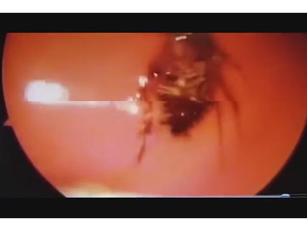 Check out the creepy video where the doctors are having a tough time pulling out the cockroach!