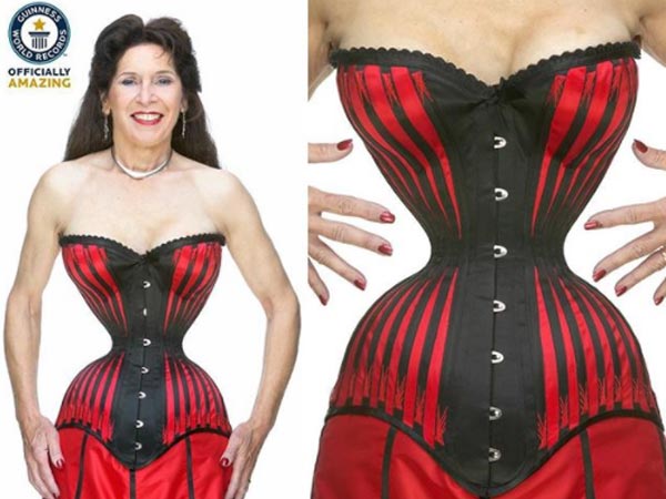 This amazing lady named Cathie Jung from the USA has a corseted waist that measures only 38.1 cm! If you were in the misconception that the Kardashians have the biggest waist-to-hip ratio, then she would break your myth!