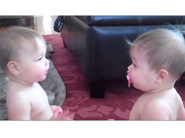 These twins taking a pacifier forward and backwards from each other will light up your day for sure!