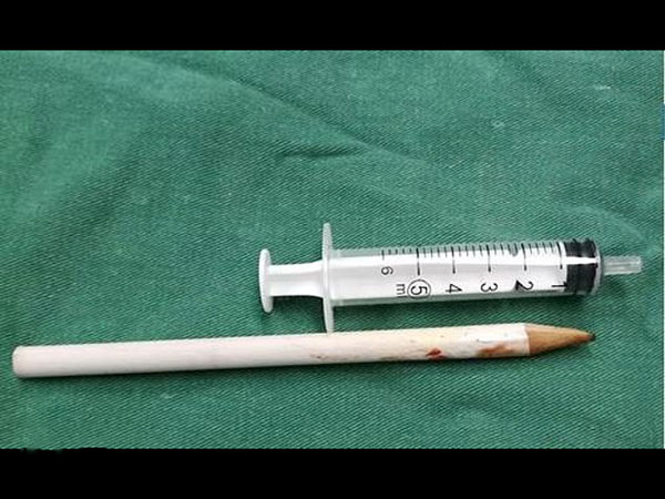It is reported that the boy had been running around with the 12 cm-long pencil at his kindergarten in Ganzhou, Jiangxi province, China when the accident happened.
