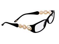 The "3 Happy Spirit" motif, echoes the refined dials of Chopard's Happy Spirit timepieces, and draws its inspiration from the sumptuous temples of the 2009 Limited Edition sunglasses. This model features a shower of rhinestones set on three circular trims, reflecting light with delicate elegance through a cluster of glittering crystals. The collection comes in various colours, made yet more elegant by a beautiful mother-of-pearl effect. The "Fretted Logomania" motif features an intricate fretwork metal design in the temples, enriched with small "Happy Spirit" concentric circle details, executed with painstaking skill to create an original design of elegant and intricate detail. The overall effect is striking in its lightness.