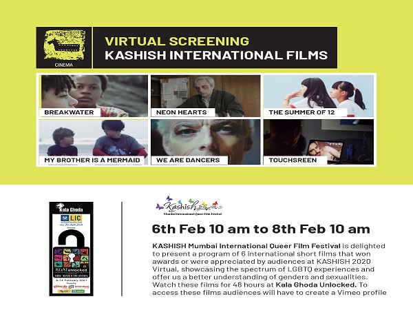 The 31st Kala Ghoda Arts Festival 2021 will actually kickstart on February 6th with the Best of KASHISH - International program of 6 short films that showcases the diversity of global LGBTQ experiences in Brazil, Macedonia, Taiwan, UK and USA. These have been award winners or audience favourites at the KASHISH 2020 Virtual edition held last year in July. This program that starts at 10am will be available for 48 hours for people in India who register at https://insider.in/kgaf-2021-international-selection-kashish-mumbai-international-queer-film-festival-feb6-2021/event