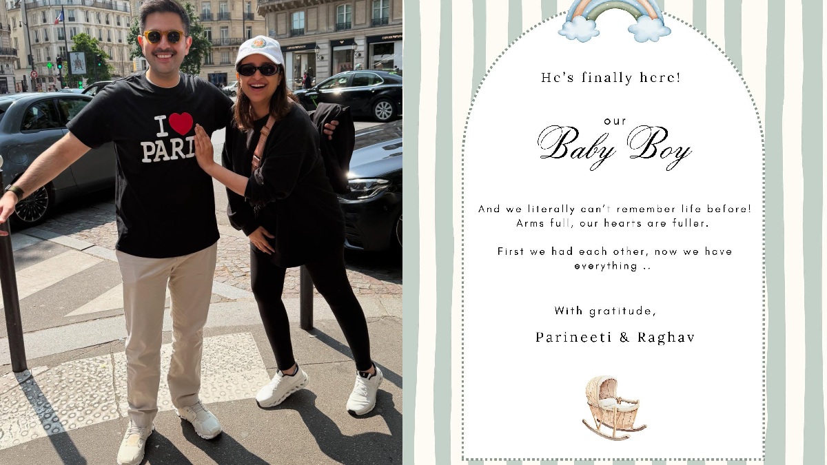 Bollywood actress Parineeti Chopra and politician Raghav Chadha have shared the happiest news in their life with their fans: the couple welcomed their first child, a baby boy, on Sunday, October 19, 2025 coinciding with the auspicious celebration of Choti Diwali. Sharing their joy on social media, the couple wrote, "He's finally here, our baby boy. And we literally can't remember life before! Arms full, our hearts are fuller! First we had each other, now we have everything... With gratitude, Parineeti & Raghav."