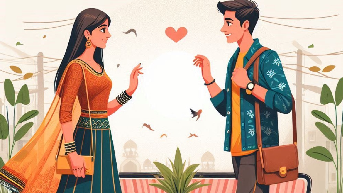 Taking a deep breath, she knocked on the door and stepped into the classroom, catching the sharp gaze of the sari-clad teacher. "Kya... main... Amal Raj se... mil sakti hoon?" she asked hesitantly, her cheeks burning as the teacher reprimanded her to speak in English. When she finally muttered, "I am... main uski girlfriend hoon," the whole class burst into laughter.