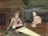 One day when Kabir was working on His loom, a disciple of His came rushing with great excitement with the news that a juggler on the street has attracted a huge gathering by making a bamboo stand in the air. Kabir immediately rushed out with a ball of thread to the gathering where the juggler was performing his feat. He threw up the ball of thread in the air which unwound on its own until the full length stood stiff and straight without any support in the mid air. The thread stood at a far greater height than the bamboo of the juggler . The abashed juggler left the place as the awestruck audience witnessed the power of Kabir.