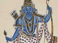 Once while Rama was roaming in the forest in search of his abducted wife Sita, the crow insulted Him to check what would be the consequence and know if He is really a divine incarnation. Rama who was an excellent archer followed the bird with his bow. Bhushandi started flying away. As the crow started flying higher and higher, he could only see Rama everywhere he flew. The bird flew in unimaginable heights, but everywhere he flew, he could only see Rama. The exhausted bird then dropped itself on the earth, creeping its way through the underbrush to escape Rama. But Rama was there too!