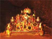 It is definitely a beautiful sight for hundreds of thousands of devotees who visit the Vaishno Devi shrine during the nine-day Navratri festival apart from the piety that prevails there. The flower arrangement in the temple situated in the Trikuta hills in the Himalayas, has added to the enthusiasm of the people who throng there after the 12 KM climb to the temple.