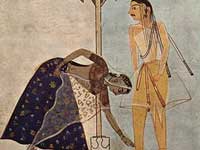 One more culturally significant action is when we prostrate to our elders - father, mother, or teacher. Prostration means that one touches the feet of an elder with one's head. Why? The feet stands rooted in that elder's love for me, in the sacrifices that he or she has made for me, something that I admire in that person. That ideal I want to bring into my head. It is symbolized in the prostration. I surrender myself in order to invoke that great essence or quality into myself.