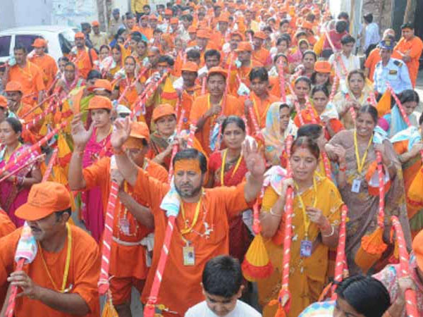 This pilgrimage undertaken to fetch the water of Ganga is known as Kanwar Yatra. The pilgrims are called Kanwarias. Dressed in saffron as saints, or in other casual wears, the devotees carry a bamboo stick on one or both the shoulders; from the two ends of the bamboo hang bottles of water from the Ganga river. The stick and the whole set of the stick and the weights on both the sides is known as a Kanwar.