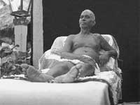 The Dr.Rao in turn begged Bhagavan to relax His resolve and entreated Him to allow him to massage His legs. Prop came an instruction camouflaged in the garb of an answer, " If you think Ramana is the body stretched on the couch, you may ask the body and if the body is feeling the pain, let it ask by itself"