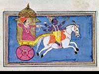 In Vyasa's depiction of the story of the divine incarnation Krishna, Lord Krishna is made to declare the message of the Gita, which is nothing but a reinterpretation of the ancient wisdom of the Upanishads with proper emphasis upon certain vital factors that seem to have been distorted and dried out of recognition in the parched mouths of the Pundits. With the deification of Krishna, Hinduism entered its theistic era; it recognized the Lord as having descended in the form of a mortal in order to reorient India's forgotten Dharma and to pull the decadent culture back again on its high pedestal. This is the most daring and original thought of Vyasa in the whole Gita; that the Supreme, in His unlimited freedom, by his own perfectly free will, takes upon Himself the conditioning of matter and manifests Himself in a particular embodiment in the world for serving the deluded generation of the time. To the Lord, His ignorance is but a pose assumed, not a fact lived. A mortal becomes victimized by his Avidya (ignorance), whereas the Lord is the master of his Maya.
