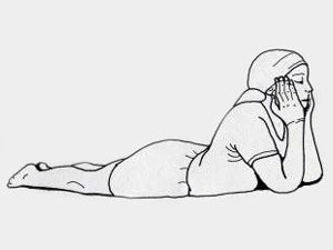 Bring the elbows towards the body to raise the shoulders and the upper chest a little off the ground.