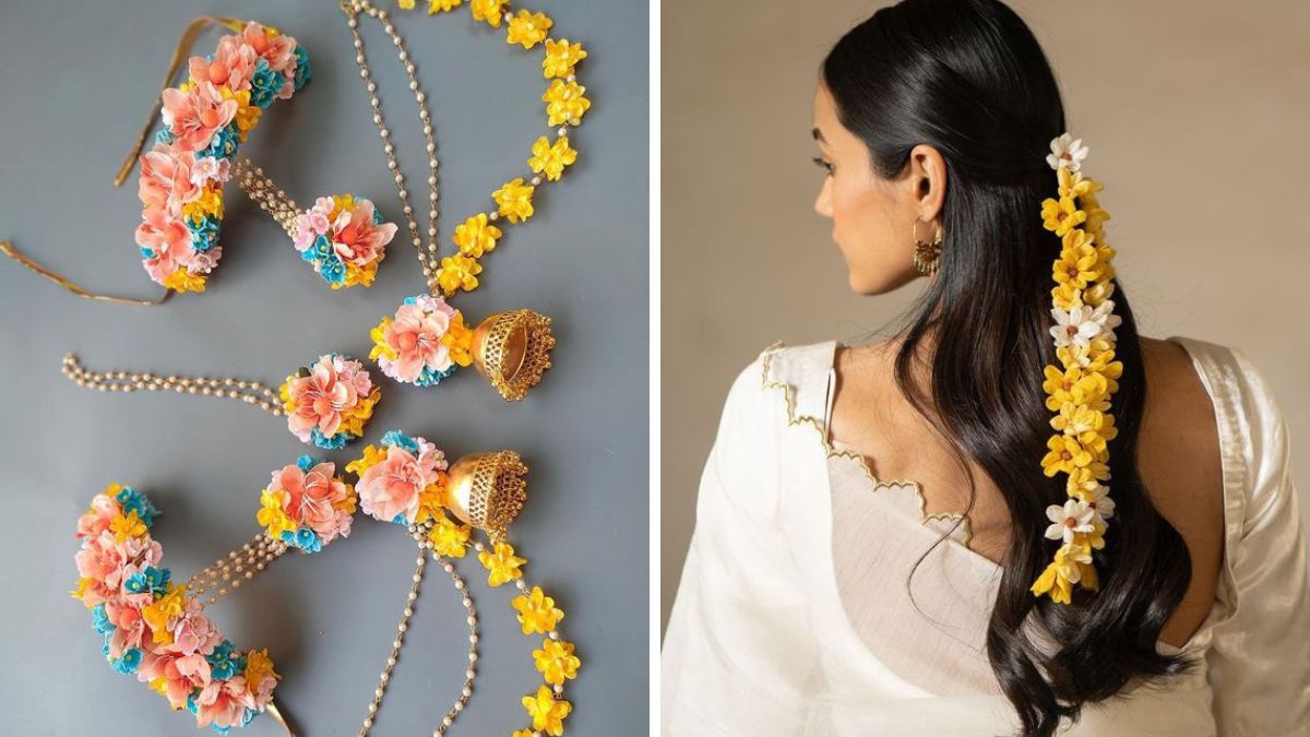 1. Floral Hair Accessories: Crown yourself with the beauty of nature by adorning your hair with exquisite floral hair accessories. A delicate jasmine garland wrapped around a bun or woven into a braid can instantly elevate your hairstyle, giving you a regal and traditional look.