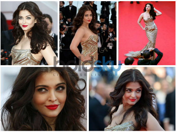 The L'Oreal brand ambassador Aishwarya Rai Bachchan walked the red carpet at the 67th Cannes International Film Festival 2014 looking smashing in a golden Roberto Cavalli gown. There are many who want to copy her style and be just like her, especially after she showed us her hourglass figure at Cannes 2014 red carpet. Boldksy, has put together Aishwarya Rai Cannes 2014 ten best looks which will drive you insane.