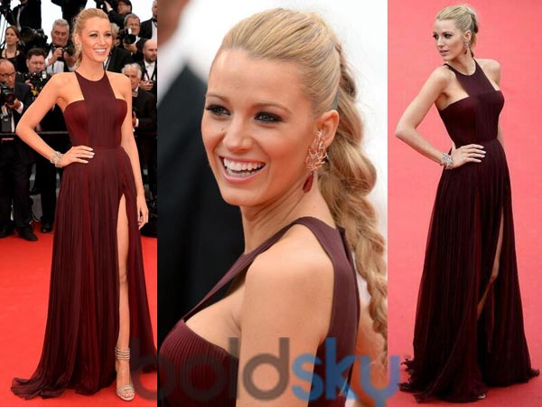 The Hollywood beauty, Blake Lively at Cannes 2014 was dressed in a splendid oxy-blood dress by designer Gucci. When Blake Lively walked the red carpet at Cannes 2014, there were thrills in the air. The actress looked smart and sexy in the floor length gown by Gucci. The dress had a thigh high slit which was so amazing that made heads turn and hearts skip beats.