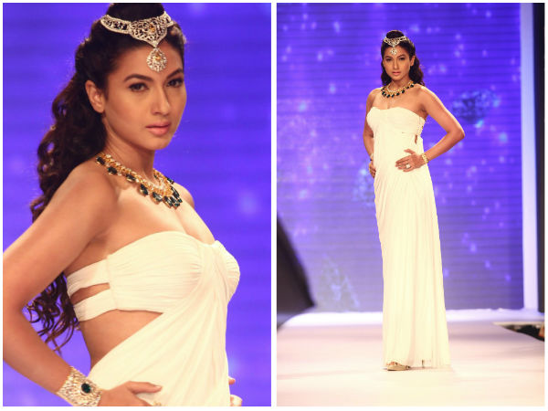 The Indian Institute of Gems & Jewellery which showcased some of their best collections saw Gauhar Khan as the showstopper. Dressed in a white long, free flowing gown by designer Prerana Nagpal, she looked stunning and beautiful. The premier educational project of the Gem & Jewellery Export Promotion Council (GJEPC), which is sponsored by the Ministry of Commerce & Industry, Government of India did make a lot of jaws drop through their collection.