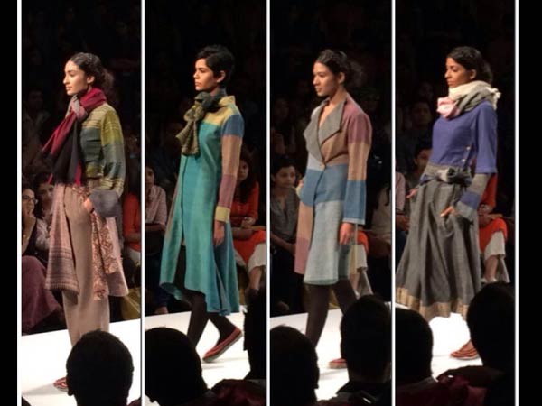 There's something about playing with textiles and our natural reserves. Textured stripes, plaids and A-lines dominated Paromita Banerjee's collection. The show was divided into three parts which depicted different stories of the handmade to the handloom. The 1st story is a collection of hand-woven cotton weaves which consisted of contemporary silhouettes like jackets, reversible capes, shirt dresses.