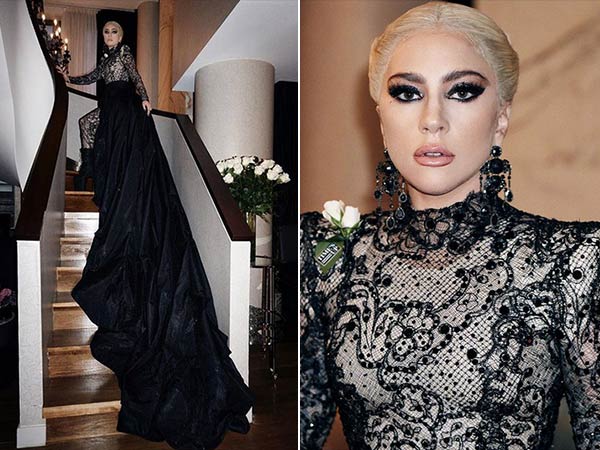 Another sizzling style sensation who is known for redefining fashion, Lady Gaga was also present at the event. She too was supporting the Times Up cause with her style book. As a part of her OOTD, she was wearing a super-elegant gown from Armani Prive, which had a lacy top and a long trail.