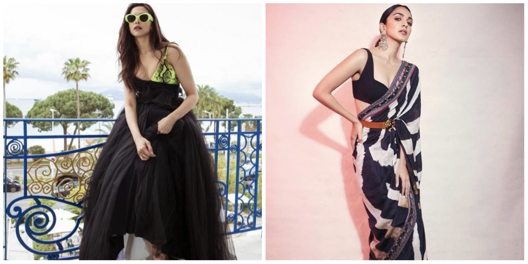 Pretty actress Kiara Advani chose this lovely black modern saree with a zebra-style print. The chic pattern on the saree elevated the six-yards ensemble by leaps and bounds.