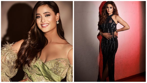 Shweta looked like a vision in a black dress. Her sheer lace outfit featured detailing including a fitted bodice, halter neckline, and thigh-high slit. The sheer, figure-hugging silhouette accentuated her curves perfectly.