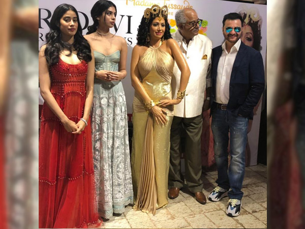Actor Sanjay Kapoor took to his Instagram account to share a special moment with his followers. Well, he was with Boney Kapoor, Janhvi Kapoor, and Khushi Kapoor to unveil the wax statue of late veteran actress, Sridevi. Her wax statue seemed so real and was a replica of her look from her famous Mr.India song, Hawa Hawai. For the occasion, Janhvi and Khushi wore gowns. Let's decode the look of Sridevi's wax statue and Janhvi and Khushi's fashion statements.
