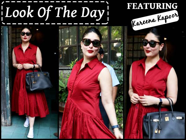 Kareena teamed the dress with a handbag that she picked from Hermes and a pair of sneakers, white in colour. When it came to her makeup, she just carried a bright red shade of lipstick, that was perfectly matching with the dress colour. The hairdo was simple but looked good. Pulling all the hairs at the back tied in a ponytail, she kept her hairstyle simple.