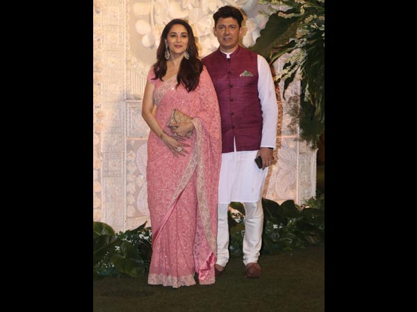 Be it her killer dance moves or her on-point fashion choices, the beauty queen of Bollywood, Madhuri Dixit Nene always woos us with her fashion statements. And this time again, the actress caught our attention as she graced Mukesh Ambani's Antilla for Ganesh Chaturthi celebrations with husband Sriram Madhav Nene. She draped a sequinned pink sari for the special occasion. Take a close look at her stunning sari and let us decode her attire.