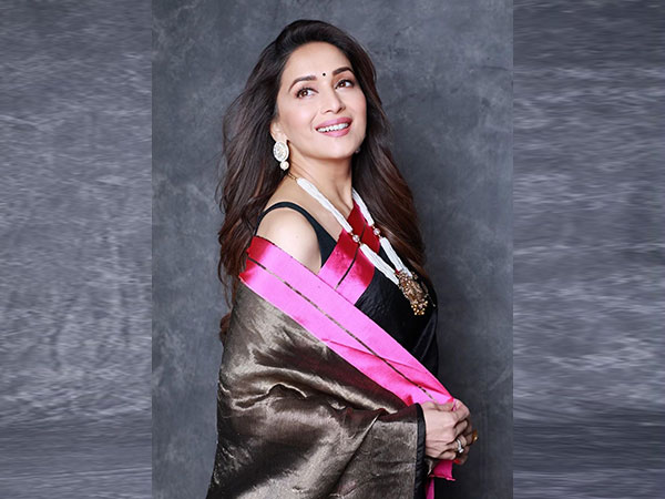 So, designed in tune with modern aesthetics and sensibilities, her sari was eye-catching. With her gorgeous sari, she celebrated the traditional craftsmanship of the country and handlooms. Her attire was dipped in a black hue and was accentuated by metallic sheen. The pink border contrasted her sari and Madhuri's sari was also adorned with subtle floral prints. She teamed her sari with a sleeveless black blouse.