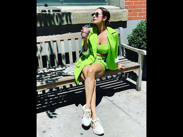 Malaika Arora is holidaying with Arjun Kapoor these days and the diva has been sharing her vacay pics on the social media. Her latest pic had her basking in the sun and sipping juice. The attire of the day was a neon green number, which she said was her colour of the season. This was the second time, this month that Malaika flaunted this hue. Let's talk about her latest attire.