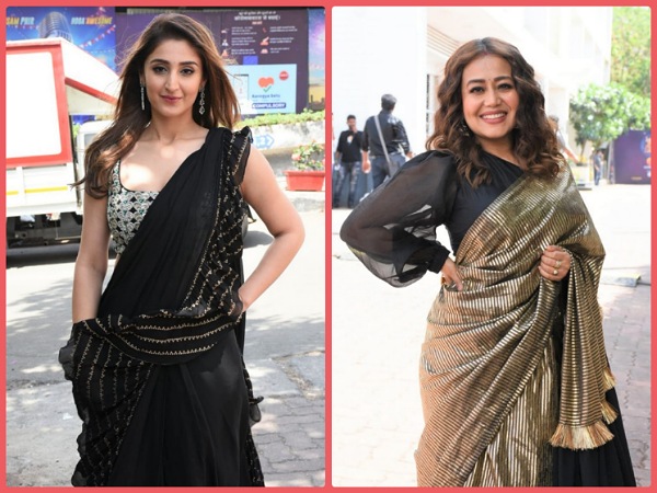Recently, Neha Kakkar and Dhvani Bhanushali stepped out in their gorgeous sarees for the shoot of the upcoming episode of Indian Idol. The two amazing singers looked extremely beautiful as they slayed stylishly in their wow-worthy sarees. While Neha Kakkar flaunted a golden black saree with a long trail, Dhvani, on the other hand, looked like an epitome of beauty in her black ruffle number. So, let us take a close look at their sarees and find who looked more impressive.