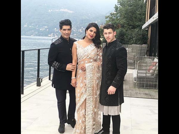 Sometimes, Priyanka Chopra likes to keep it simple and traditional. So, joined by her beau Nick Jonas and designer Manish Malhotra, Priyanka was posed to perfection with a placid lake in the background. The occasion was Isha Ambani's official engagement to Anand Piramal, and Priyanka donned a beige-hued sari for the special moment. Her beau, Nick Jonas also sported an ethnic Indian look and like Priyanka's, his outfit was too designed by Manish Malhotra.