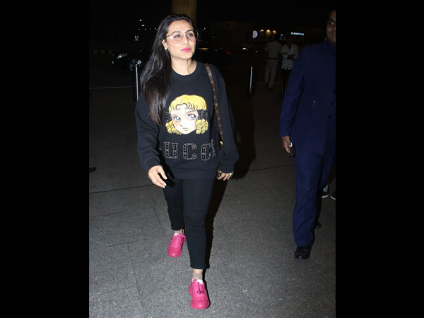 The actress also gave her attire an interesting twist by pairing it with vibrant pink sports shoes, which contrasted her black outfit. It made her look so much more cheerful and fun. She carried a signature Louis Vuitton bag with her, which went well with her look. Rani notched up her look with a brightest neon pink lip shade and accessorised her look with old-fashioned frames. She left her long tresses side-swept and loose. We thought Rani looked amazing. What do you think about this airport look of hers? Let us know that in the comment section.