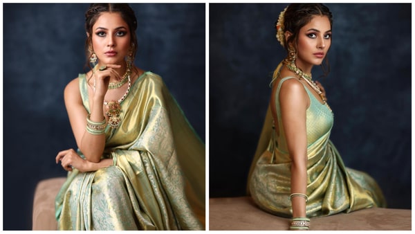 Actress Shehnaaz Gill looks beautiful in a classic kanjeevaram saree. Her traditional look is perfect for your ethnic dressing inspiration!
