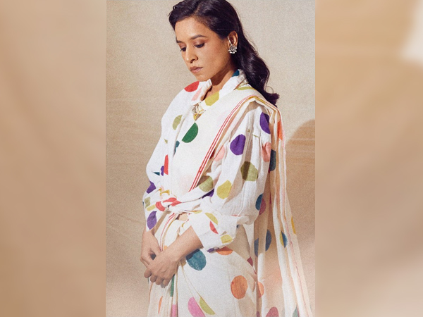 So, Tillotama Shome wore a saree that featured retro polka dots. Her sari consisted of a collared blouse with flared sleeves and it was knotted at the centre. The saree of her was impeccably draped with the pallu tucked behind the knot. Well, that was an interesting style of wearing a saree. So, dipped in a pristine white hue, Tillotama's saree was accentuated by pink, orange, and blue polka dots.