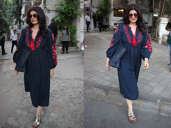 The navy-blue shoulder-bag perfectly fit the attire and Twinkle once again blew our minds with her 'perfect to the T' fashion statement.