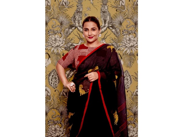 So, Vidya Balan wore a Ghuri by Debjani saree that was about interesting colour-blocks and patterns. Her saree was splashed in black hue and adorned with golden tiger patterns. The patterns were unique and celebrated the national animal of the country. Her saree also featured a red-hued border and she teamed her saree with a round-necked red blouse. The blouse was half-sleeved and featured white-lined patterns. Well, with this saree look of hers, she totally won us.