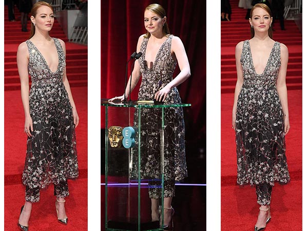 Emma Stone takes over the fashion industry as she takes over the BAFTA awards. Check her out in this shimmery ensemble.