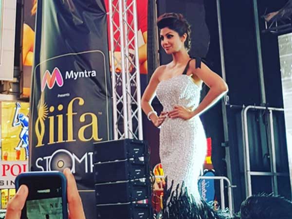 Shilpa Shetty walked the ramp of IIFA 2017 Stomp as the showstopper, wearing a Falguni and Shane Peacock gown. The actress looked stunning in the strapless gown with a furry long trail.