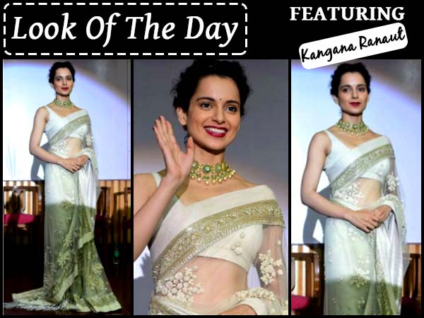 Earlier we got a chance to click Kangana's in one of Sabyasachi's beautiful saree. Kangana wore a sheer white saree from the House of Sabyasachi label and boy, she looked stellar. The sheer white saree is crafted with intricate details. It is further enhanced with a heavy shimmery border.