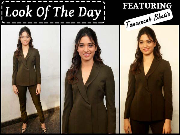 And today's Look of The Day goes to Tamannaah Bhatia for wearing classic old military colour. Tamannaah was attending a press meet at Oopiri, when we got the chance to click her look.