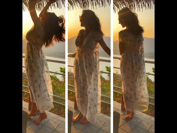 She has been flaunting her stances and adding to her grace, the sunset and background have taken a lead.