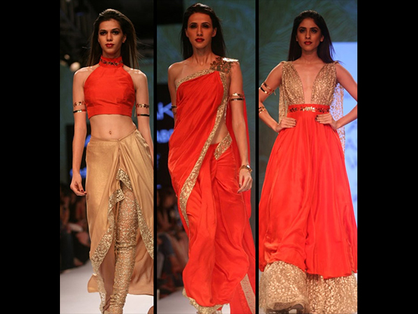 The designer who is known for bold cut-out detailing and the trademark obi belts on red carpet gowns, has taken a swift turn to present a chic and elegant bridal wear including lehengas and sarees with a twist.